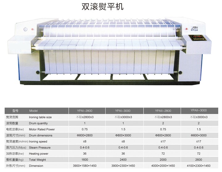 4. 工業(yè)燙平機(jī)燙速無(wú)級(jí)可調(diào),雙滾筒燙平機(jī)可高速燙平;